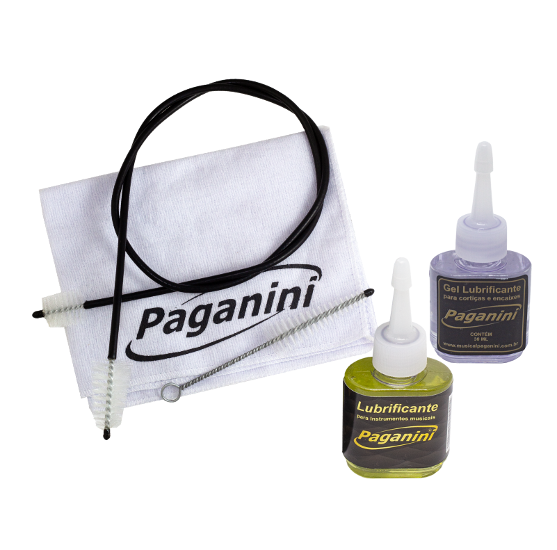 PLS 011 – KIT LIMPADOR PARA TROMPETE OU TROMBONE COM ESCOVAS, FLANELA, GEL E ÓLEO PARA PISTO
